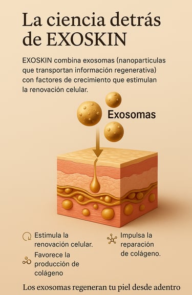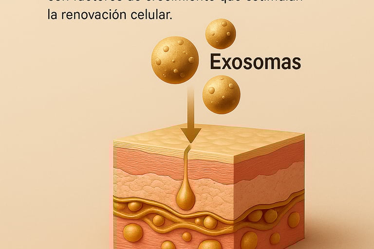 Los exosomas son diminutos mensajeros biológicos que llevan señales regenerativas a tu piel. Actúan de manera inteligente, comunicando a tus células cómo renovarse, reparar y producir colágeno de forma natural.